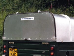 Canopies for trailers with a tailboard are offered with the option of a meshgate or aluminium door. Trailers with a ramp option will have an approximate gap of 200mm between the top of the ramp and roof of the canopy.